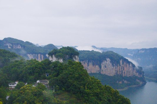乘船游览乌江源百里画廊,从原汁原味的苗族村寨化屋基,到横跨两岸的鸭池河大桥,视线所及之处峰壁险峻,百米高的悬崖峭壁形成巨大的壁画,大自然鬼斧神工的精雕细琢,两岸雄奇而不失秀美。