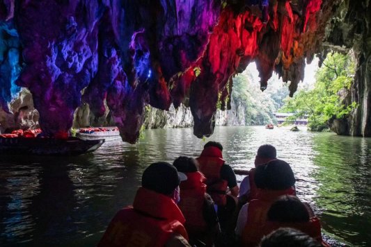 第三站到达龙宫景区,赏喀斯特溶洞风光。安顺江河峡谷纵横交错,峰丛石林、森林湖泊、暗河泉水星罗棋布,构成一幅绚丽多姿的立体画卷。
