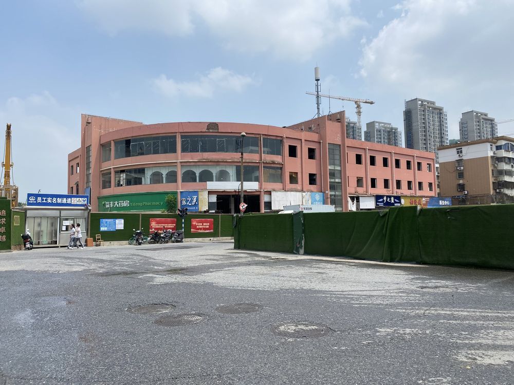 图为南京地铁1号线北延工程燕子矶站施工现场,三层建筑为未拆除的北桥市场。记者 程子龙 摄