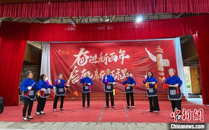 在这片红色热土上,由8名老奶奶组成的“600岁老人山歌队”非常出名。记者见到“乡土明星”时,她们身着统一的服饰,正在乡村文化礼堂舞台上一边唱着红色曲目,一边有节奏地敲打着自制的竹筒拍,一个个精神矍铄、信心十足。