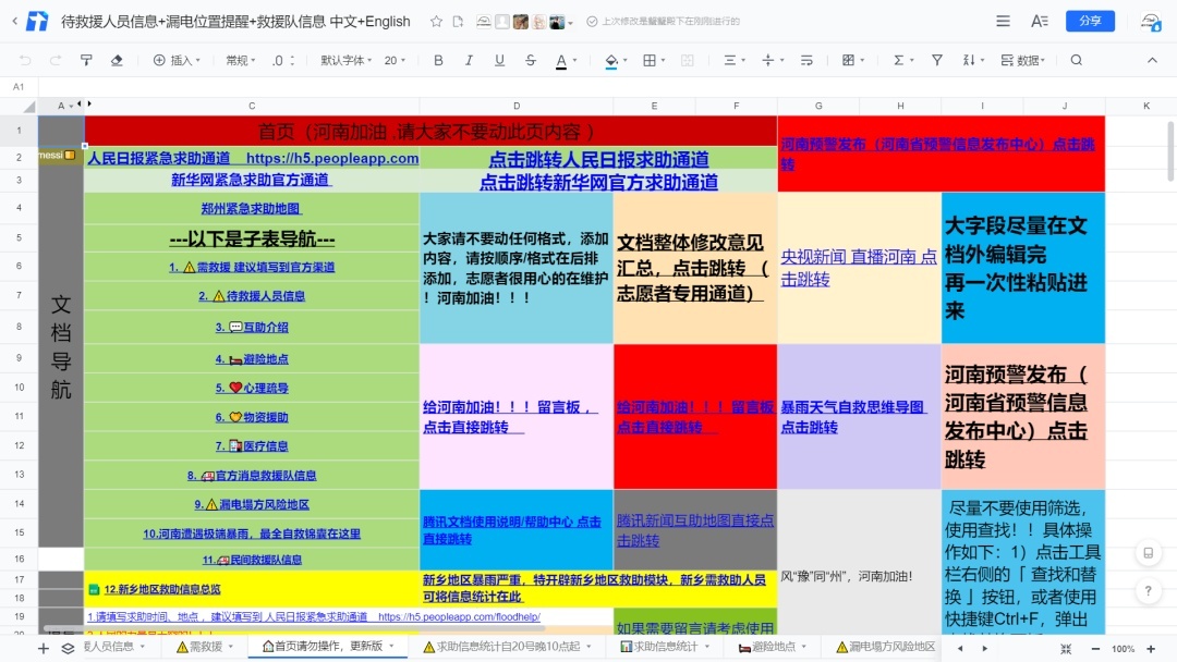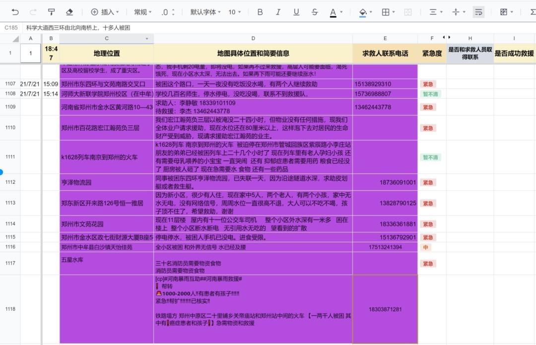 这份李睿创建、经过很多人修改完善的“救命文档”,为河南洪水中的人们提供了帮助