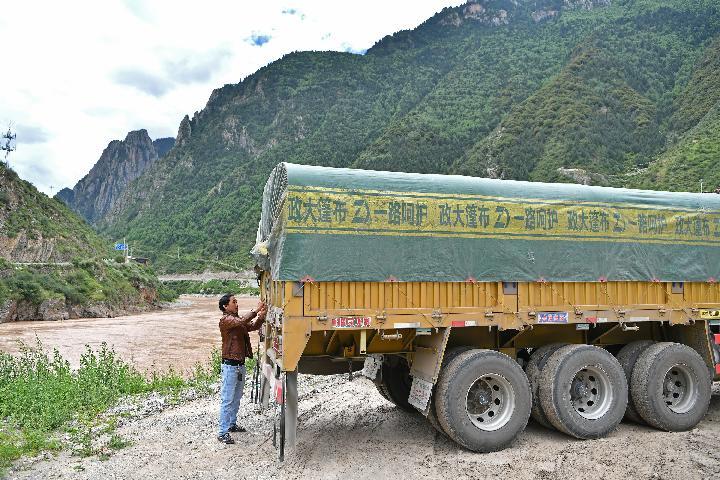 四郎巴登正在装车准备出发(2021年7月21日摄)。新华社记者李鑫摄