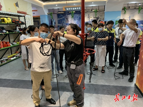 据了解,武汉赛孚城应急安全教育培训中心于今年6月开始试运营,共设有35个室内公众应急安全体验模块,涵盖自然灾害、公共设施安全、家庭用火用电安全等多个领域。除了实景、VR等展示教学环节,参观者还能现场“上手”体验,学习打绳结、高空缓降、灭火、汽车破窗、火灾逃离等应急知识和技巧。