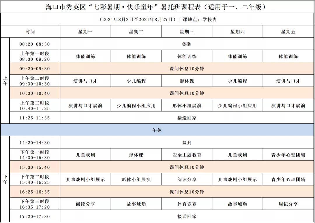 秀英区长滨小学、海口市第二十七小学、海口市康安学校托管课程表