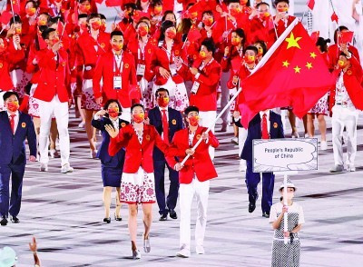 23日,第32届夏季奥林匹克运动会开幕式在日本东京举行。图为中国体育代表团入场。新华社发