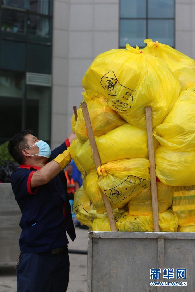 7月24日,在郑州大学第一附属医院河医院区,工作人员在清运垃圾。