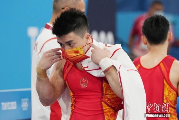 当地时间7月21日,东京奥运会开幕在即,各国运动员在位于东京的有明体操体育馆进行适应场地训练。图为中国选手结束训练后戴上口罩。 中新社记者 韩海丹 摄