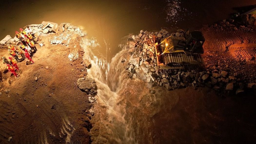 大堤上推土机轰隆隆作响,驾驶室内温度高达40℃。中国安能的专业操作手汪伟风汗水从脸颊直往下淌。“参加这么多次决口封堵,这是最难的一次。”尽管这样,他和战友们的抢险步伐却一刻未停歇。有信心打赢决口封堵这场硬仗,汪伟风坚定地说。