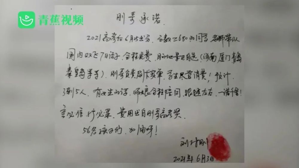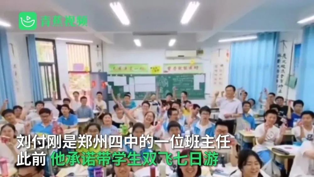 郑州四中首届钱学森实验班(高三7班)的班主任刘付刚在考前承诺,分数公布后,他会带680分以上的学生免费国内7日游。