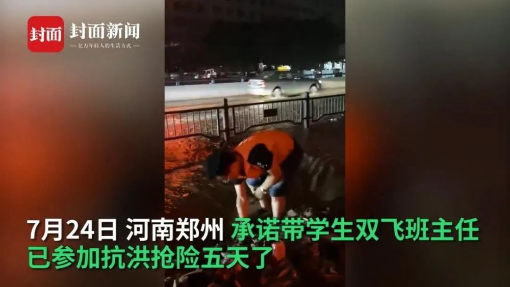 7月24日,河南郑州,承诺带学生双飞的班主任刘付刚已参加抗洪抢险五天了。