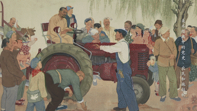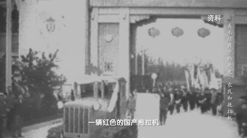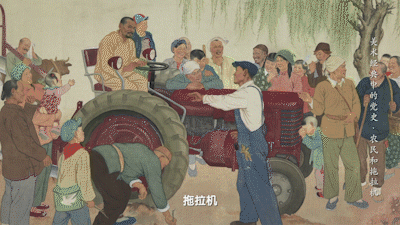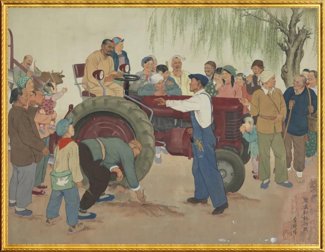 1950 年,画家李琦以农用拖拉机为新中国农业生产方式带来的巨大转变为题材,创作了国画作品《农民和拖拉机》。