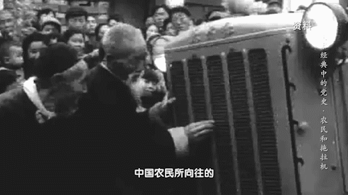 “千百年来,中国农民都是扛着锄头,迎着太阳;而新中国成立后,他们很快就要开着拖拉机去迎接朝阳了。 ”