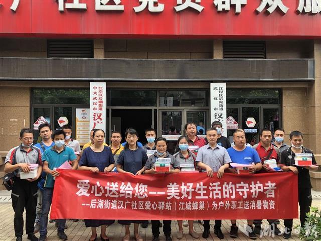 当日的活动中,快递小哥们还获得由江岸区总工会发放的由毛巾、花露水、小电扇等物资构成的“清凉大礼包”。