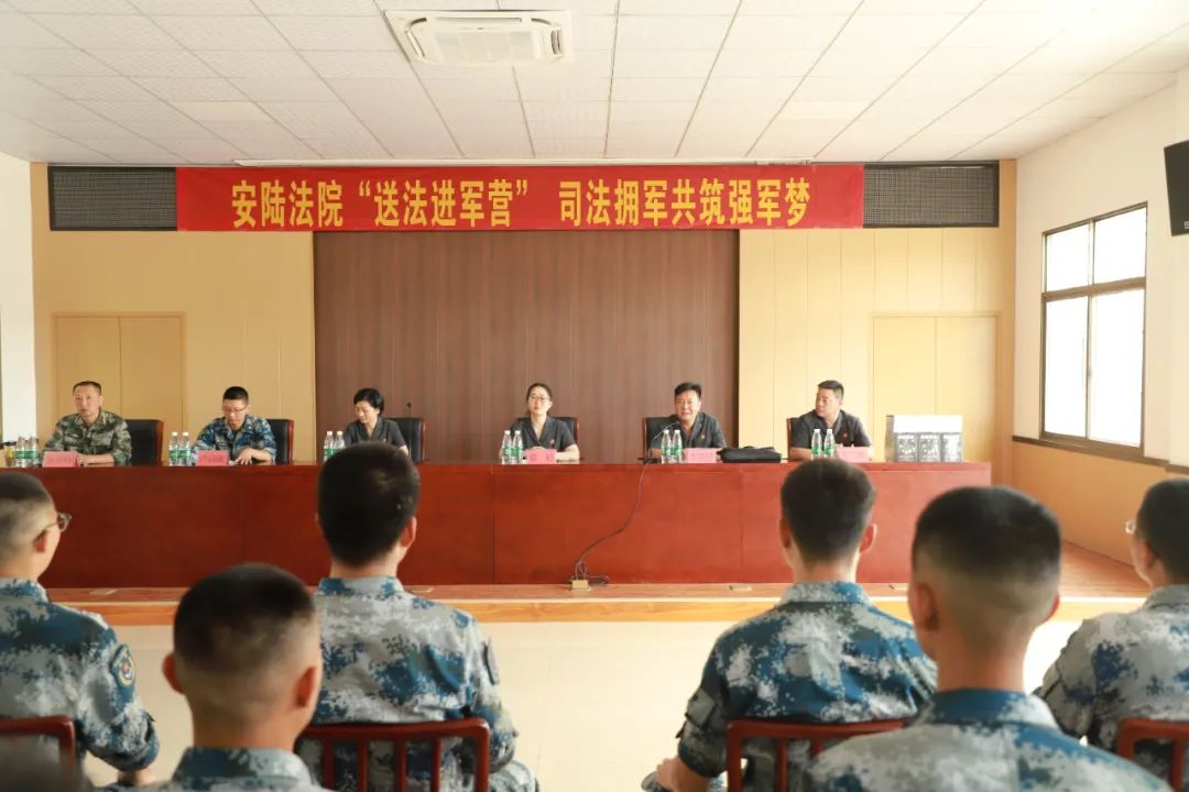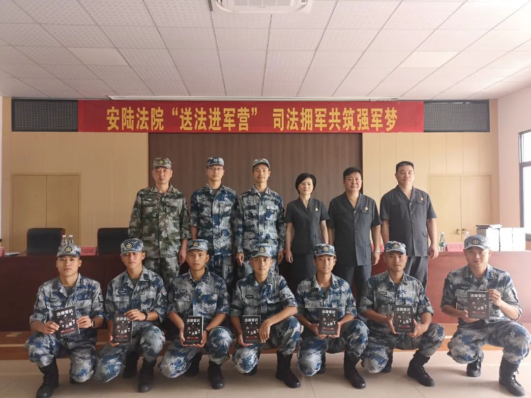 “八一”建军节前夕,安陆法院党组书记、院长张婷带队赴安陆某部队营地,开展以“传承红色基因,倾情老区维权”为主题的“送法进军营”活动 。