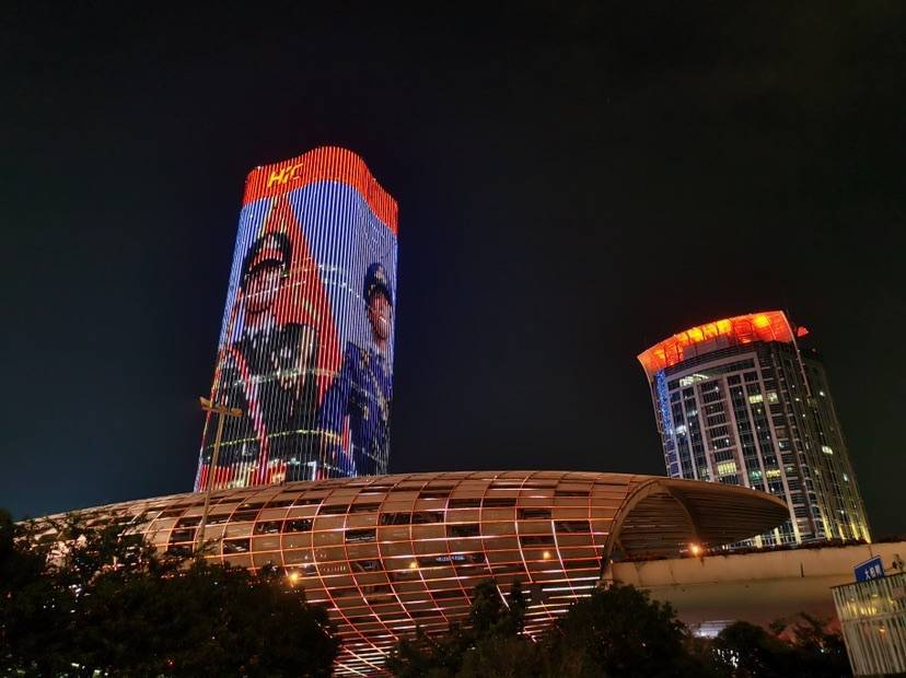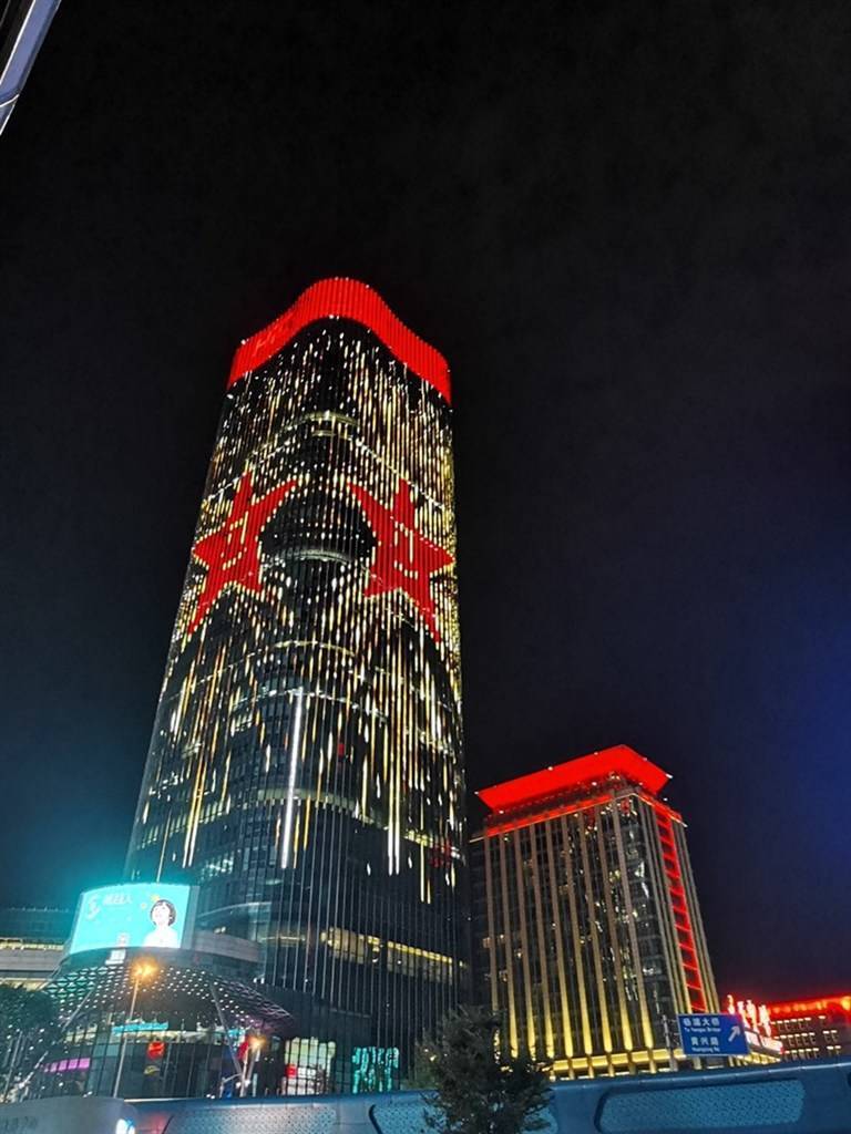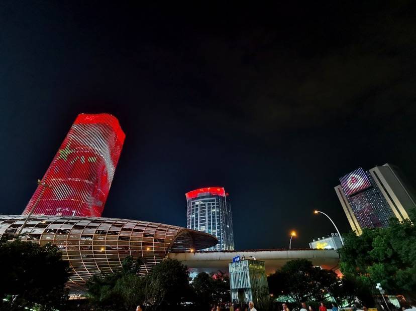 东方网记者柏可林7月31日报道:为庆祝中国人民解放军建军94周年,杨浦区绿化和市容管理局充分利用五角场商圈彩蛋灯光演绎系统、合生汇楼体屏以及金岛大厦、万达广场、苏宁易购等14栋楼体红顶系统、光耀系统,通过联动灯光表演迎接“八一”建军节。彩光闪耀,绚烂夺目,五角场商圈在“八一”期间再次化身为灯光表演实景舞台。