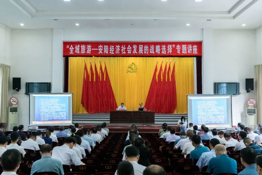 7月29日,安陆市委书记李先乔主持“全域旅游——安陆经济社会发展的战略选择”专题讲座。原国家旅游局巡视员、《中国旅游报》总编辑、旅游宏观战略分析和市场营销策划专家邵春应邀作了专题辅导报告。全体市“四大家”领导班子成员和在职副县级干部,各乡镇(街道)、开发区党政主职,市直各部门主要负责人,安陆旅游景区、园区以及旅游服务企业负责人参加讲座学习。