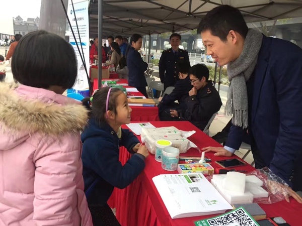 图为魏文峰正在做公益宣传活动。“老爸评测”团队成员提供。