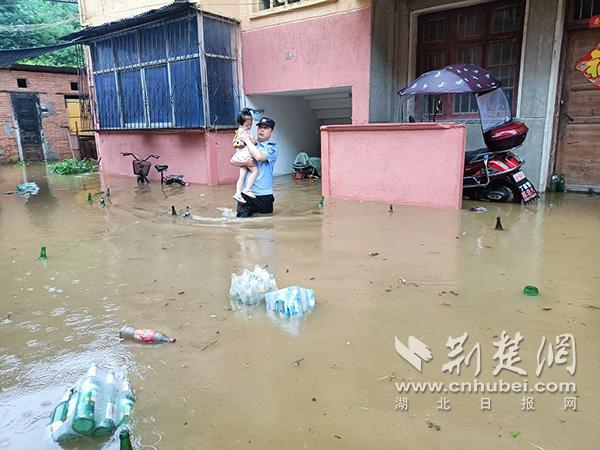 24日8时许,丹江口市公安局丁家营派出所两位民警淌着齐腰深的积水,在辖区3541居委会烂泥沟居民区背出一名年逾七旬的老人,把三名孩子从楼里救出撤离到安全地带。在后续的近半个小时里,他们与村居干部先后帮助30多名群众安全撤离。