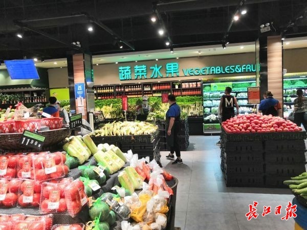 武商超市亚贸店生鲜区,记者看到,称好的冬瓜、南瓜在1公斤左右,2至3元一块。夏天热门的红苋菜5.98元/公斤。在米面油区域,摆放有不少特价商品,如一袋5公斤装金龙鱼寒地东北大米为29.9元。