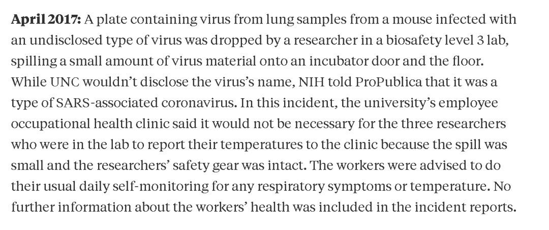 因为这所大学的生物实验室里,不仅进行着直接涉及冠状病毒的病毒增强实验,而且其实验室安全记录同样极为差劲。