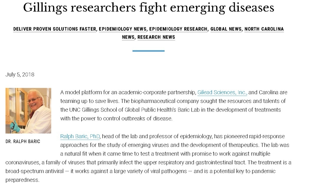 不过,倘若按照巴里克陷害武汉病毒所的逻辑去看待病毒来源问题,那么他和他在美国北卡罗莱纳大学的实验室,才是真正应该被调查的对象。