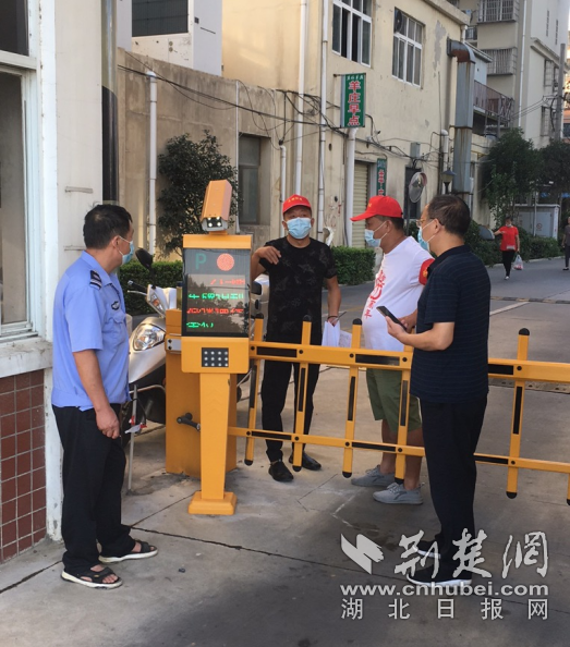 小区门口设监测点,对进出人员进行体温检测登记。通讯员 供图