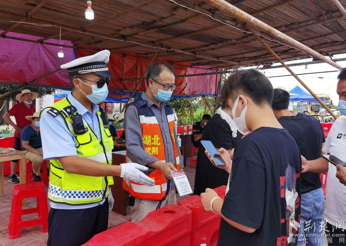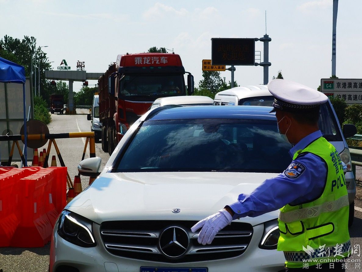 荆楚网(湖北日报网)讯(通讯员程国辉、王应明)“师傅,我们是应城交警,请将车熄火,配合我们检查......”8月5日9时许,在武荆高速郎君出口的疫情防控检查点,应城市公安局交警大队检查点的负责人王安平对过往车辆的驾驶员如是说。从8月4日起,交警大队按照市防控指挥部和市公安局的部署要求,重启辖区四个高速的卡点,联勤联控,全力抗疫,筑牢安全屏障!