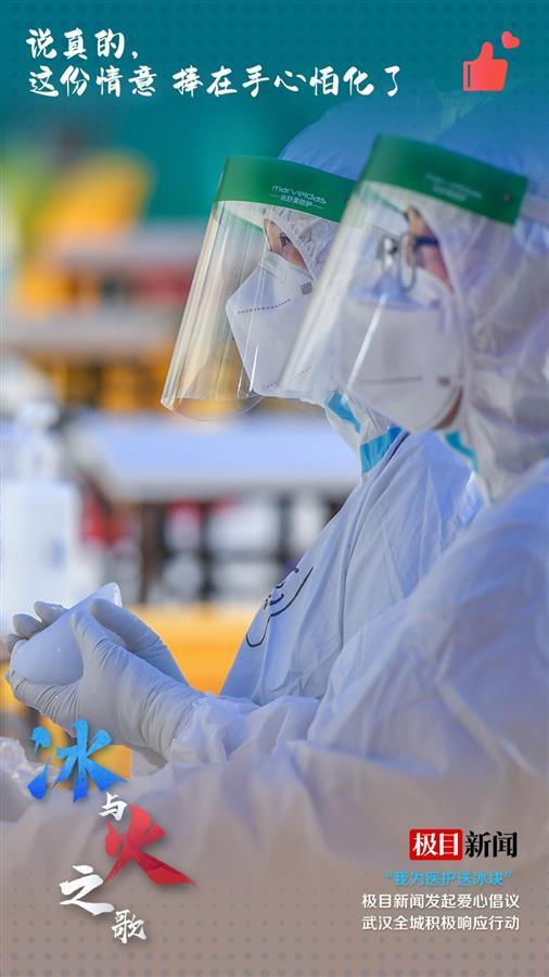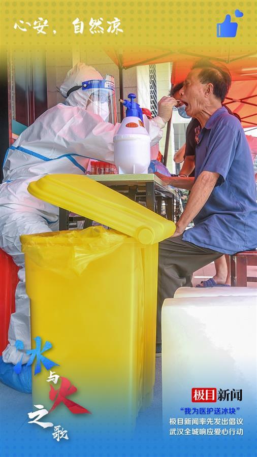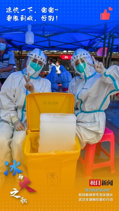 8月4日上午,极目新闻率先发起《我给医务送冰块》特别倡议,全城爱心企业、单位及广大市民积极响应。连日来,热火朝天的核酸检测现场,爱心冰块和冰水源源不断抵达,清凉的暖意,直抵人心。