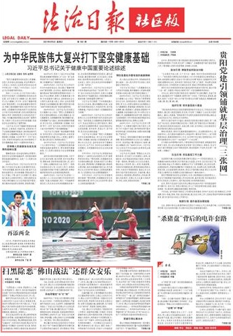 在打击利用信息网络实施涉黑涉恶违法犯罪专项整治行动中,佛山共打掉网络黑恶团伙57个,有效遏制网络违法犯罪多发高发势头;该市市场监督管理局在全省率先出台《市场监管部门移送涉嫌犯罪案件类型及标准》,查办的一起案件被评为中国反垄断与反不正当竞争行政执法十大典型案件。同时,佛山还主动作为,有效防止黑恶势力阻挠村级工业园改造、征地拆迁、垃圾焚烧场等“邻避”项目开工建设,确保各重大工程项目顺利完成。