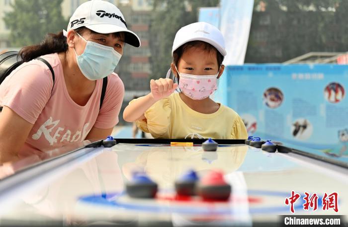 图为群众体验桌上冰壶。 翟羽佳 摄