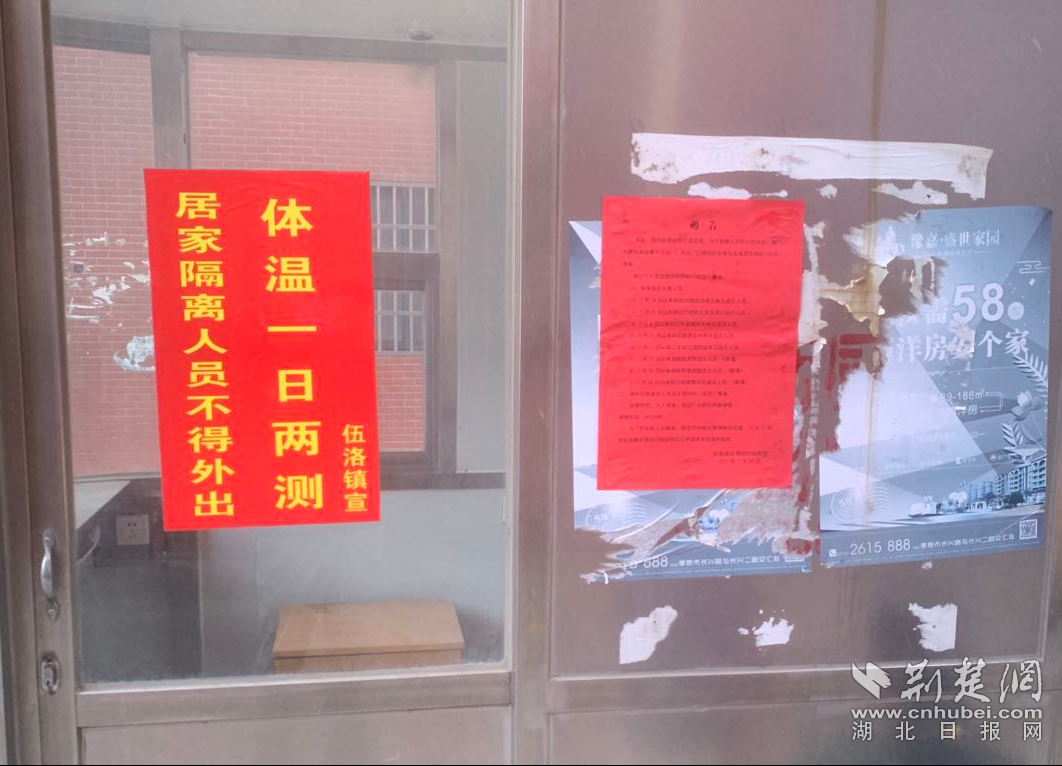 伍洛镇三集村对居家隔离人员张贴告示。通讯员 供图