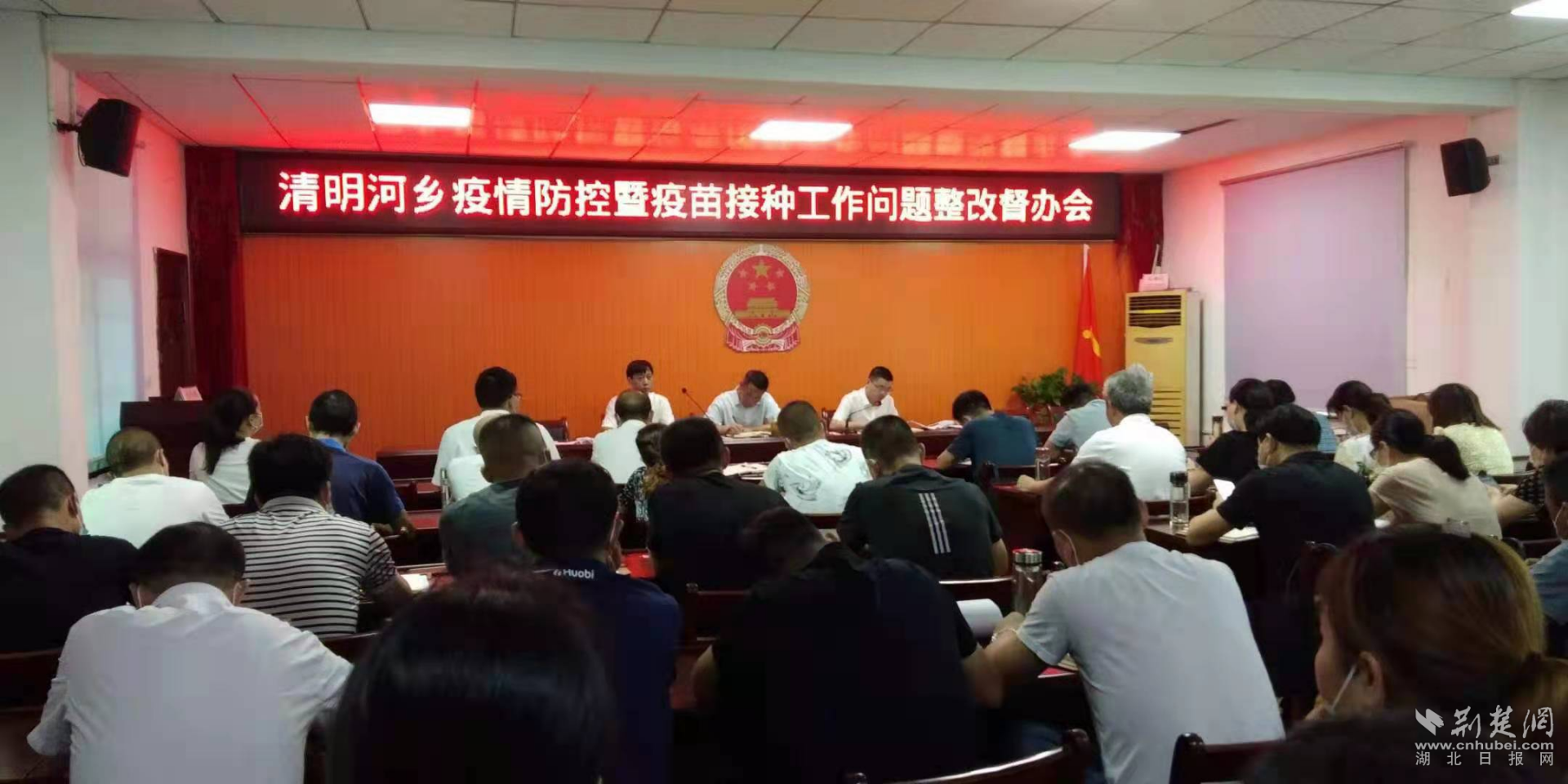 8月9日,云梦县清明河乡召开全乡疫情防控暨疫苗接种工作问题整改督办会,分寸照实通报问题,要求各村社区、哨点管理单位对照问题清单,逐条整改核销。通讯员 供图