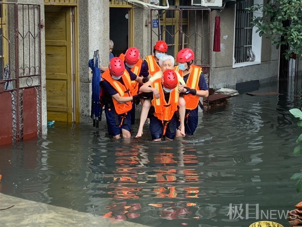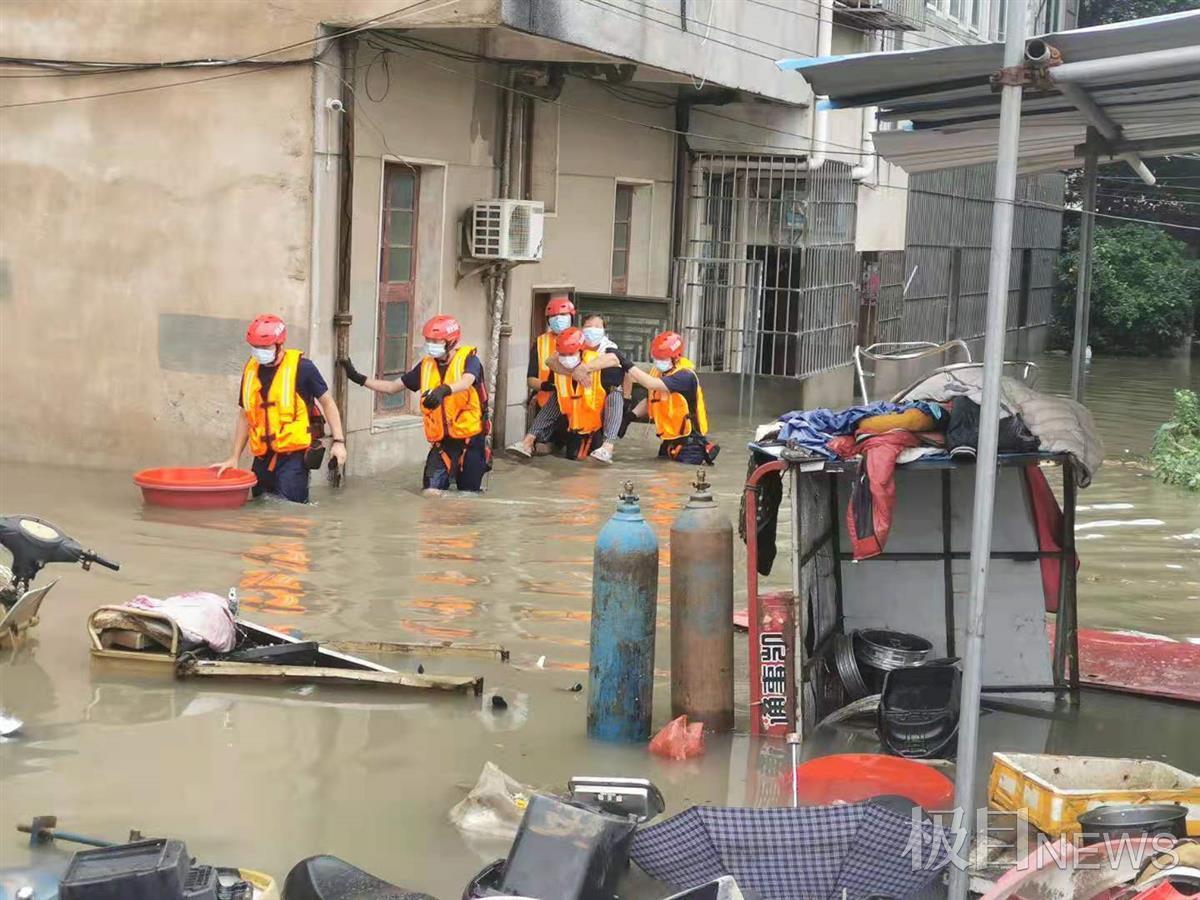 下午3时2分许,黄陂区前川街潘家田小区102号,因暴雨导致小区积水,造成6人被困。接到报警后,前川站消防员迅速赶赴现场处置。到场后,只见小区内的积水已没过膝盖位置,涉水最深处达到了1.3米,其中被困者多为老人。