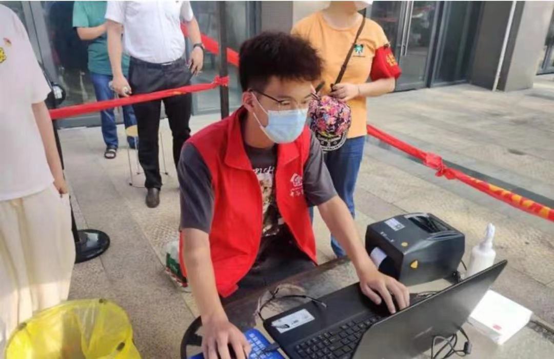 长江网讯(见习记者王玮琦 通讯员彭伟)面对防疫,有一群特别年轻的身影出现在志愿者人群中,登记信息、测量体温、检查绿码……这群孩子的暑假过得充实且有意义。8月11日,15岁的方玄烨和18岁的何宇航正在进行社区志愿者服务。