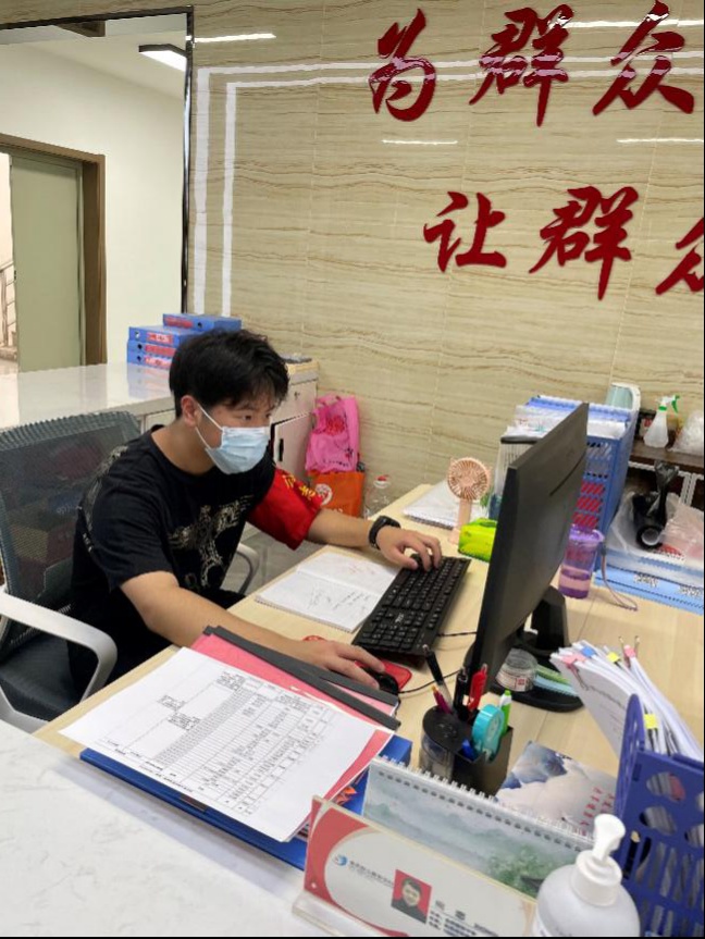 8月5日早,方玄烨和社区工作人员正在忙着对来往人员进行登记、测量体温、检查绿码、消毒快递……