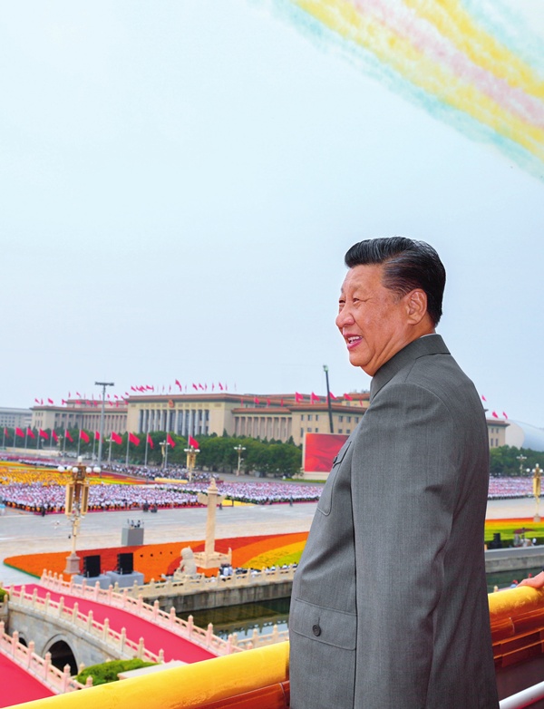 7月1日上午,庆祝中国共产党成立 100 周年大会在北京天安门广场隆重举行。中共中央总书记、国家主席、中央军委主席习近平发表重要讲话。这是习近平在天安门城楼上 李学仁摄/本刊