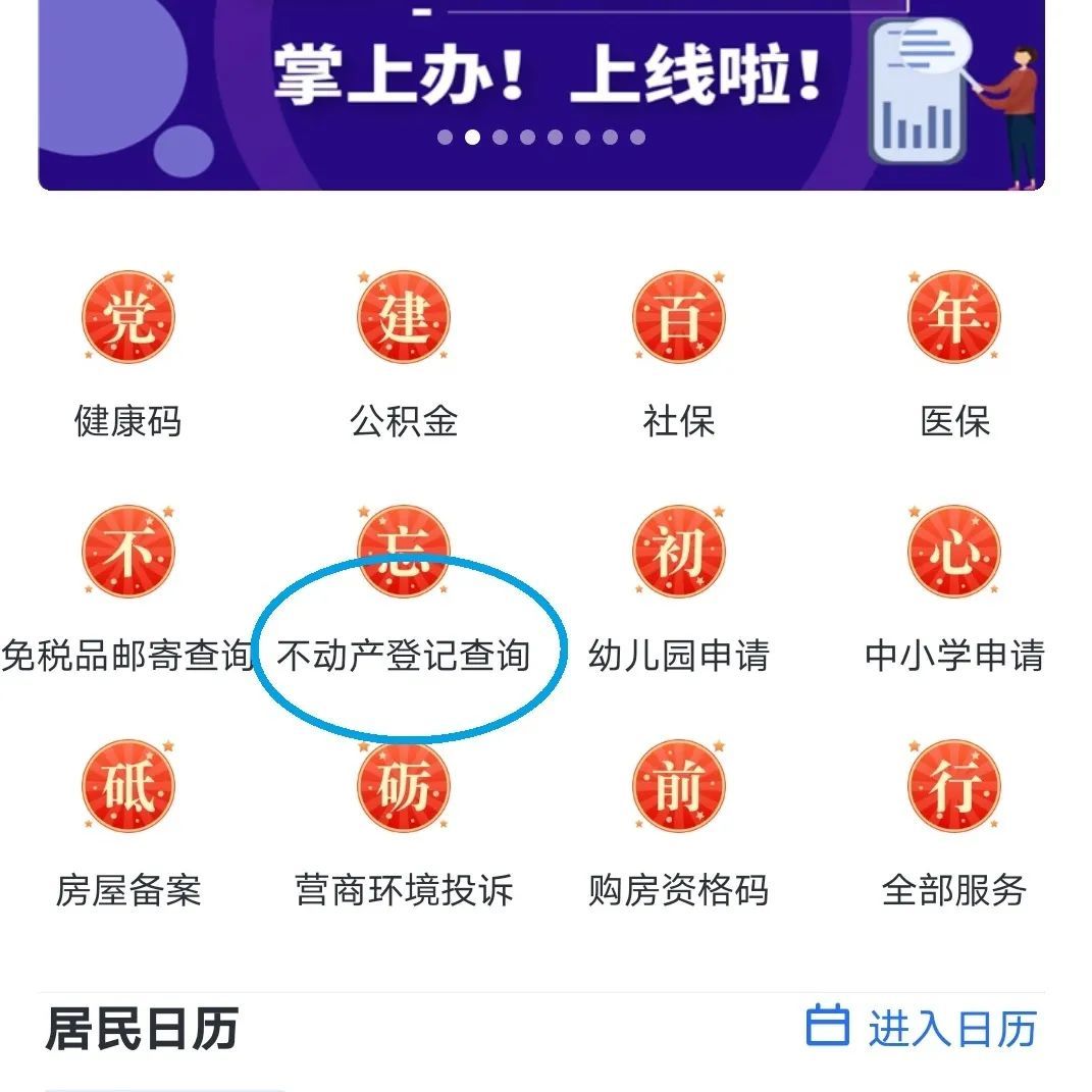 “码上办事”APP“不动产登记查询”功能位置