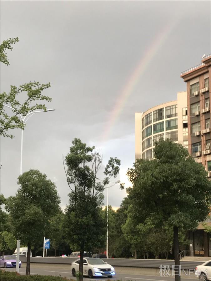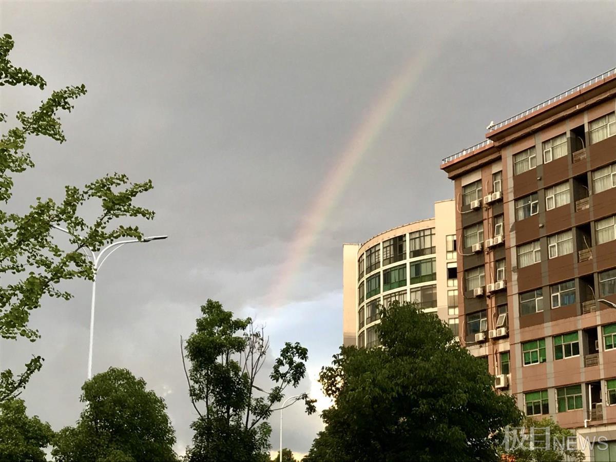 更令人称奇的是,傍晚6时40分许,东湖方向突然出现一道艳丽彩虹。