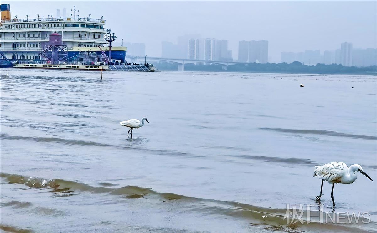 据悉,这是2002年湖北省武汉市汉口江滩建成19年来,难得一见有白鹭在汉口江滩核心公园停留、觅食的场景,从一个侧面反映了武汉市的长江生态环境大保护已见成效。