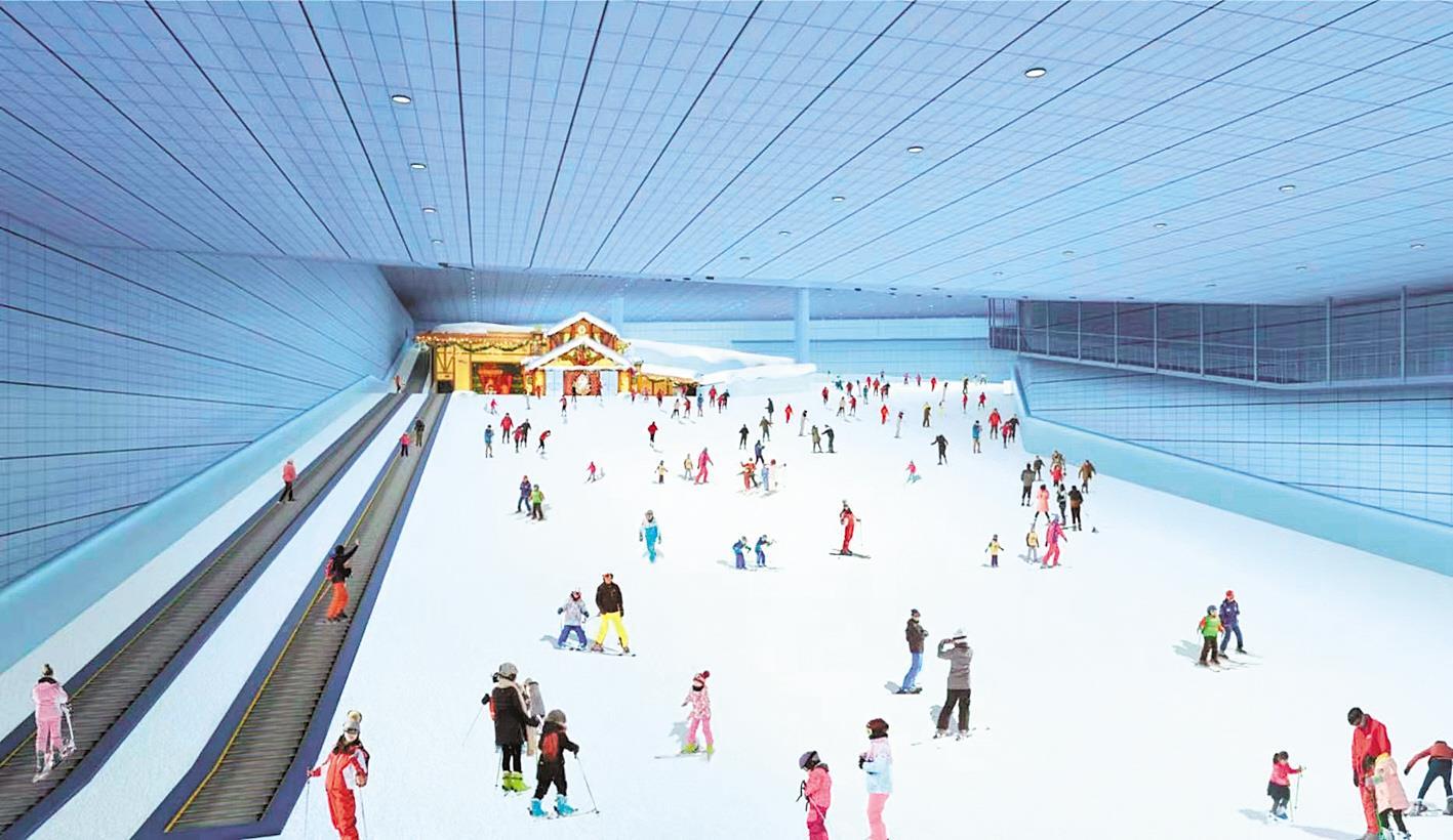 万达集团大手笔参与阳逻之心新城建设,图为落户阳逻的万达文旅城滑雪乐园项目效果图。