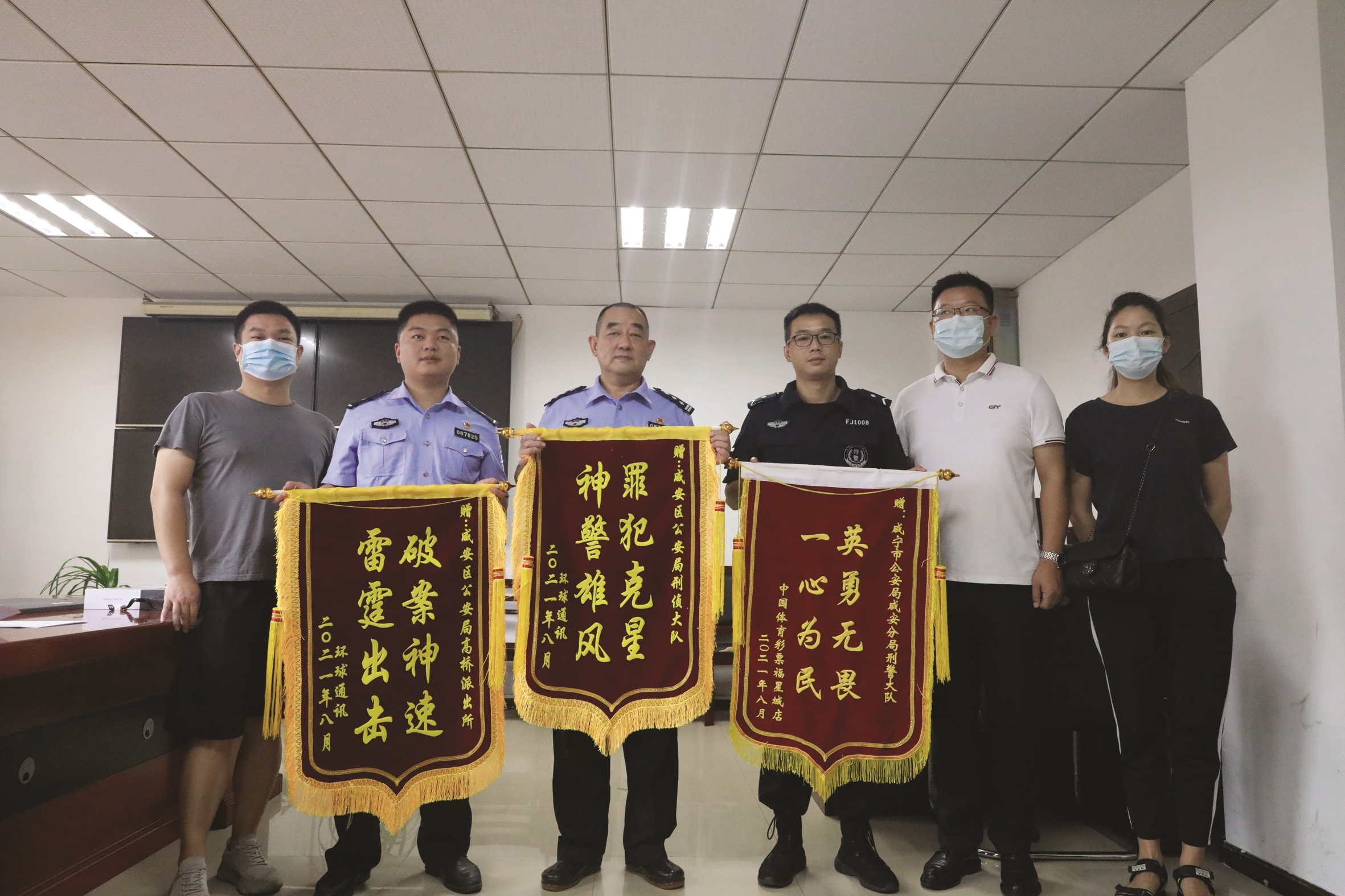 楚天都市报极目新闻讯(记者成昱勋 通讯员徐程程 吕盛华)8月13日上午,咸宁市咸安城区三家门店老板来到咸宁市公安局咸安分局刑侦大队,将写有“一心为民,英勇无畏”“雷霆出击,破案神速”等内容的三面锦旗送到了民警手中,感谢他们神速破案,挽回损失。