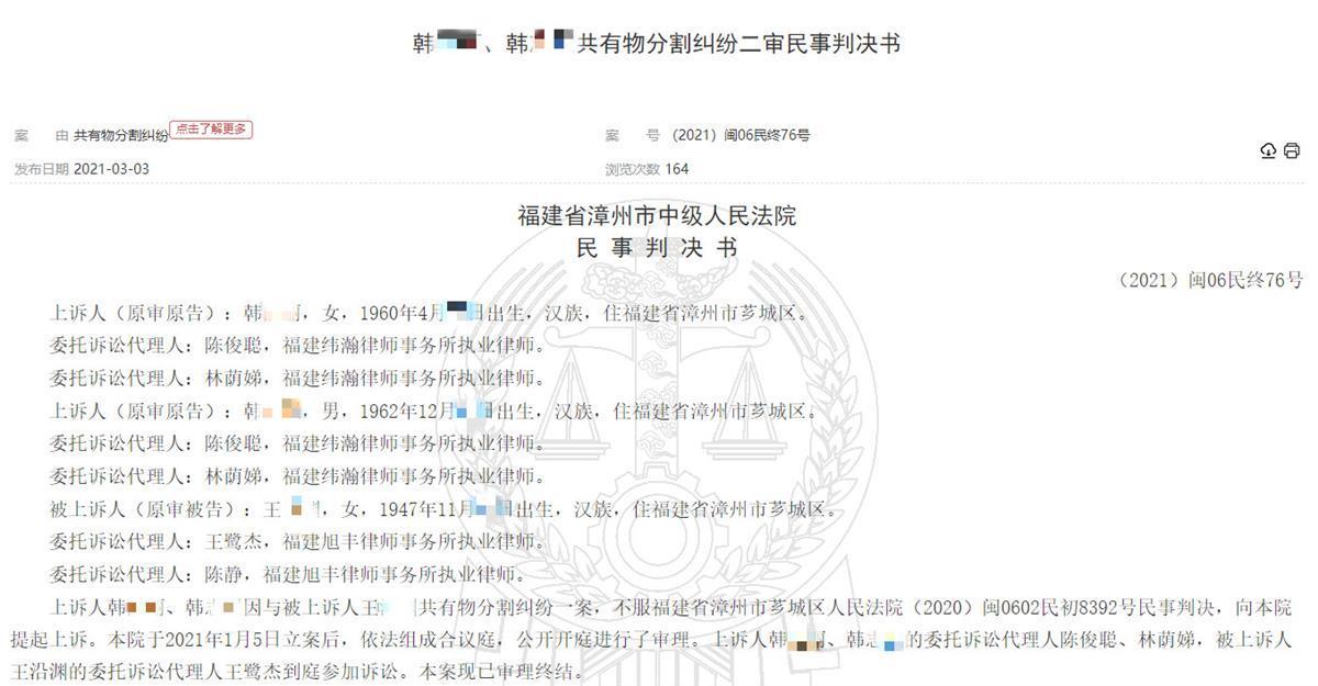 2021年2月3日,漳州市中级人民法院驳回二人上诉,维持原判。