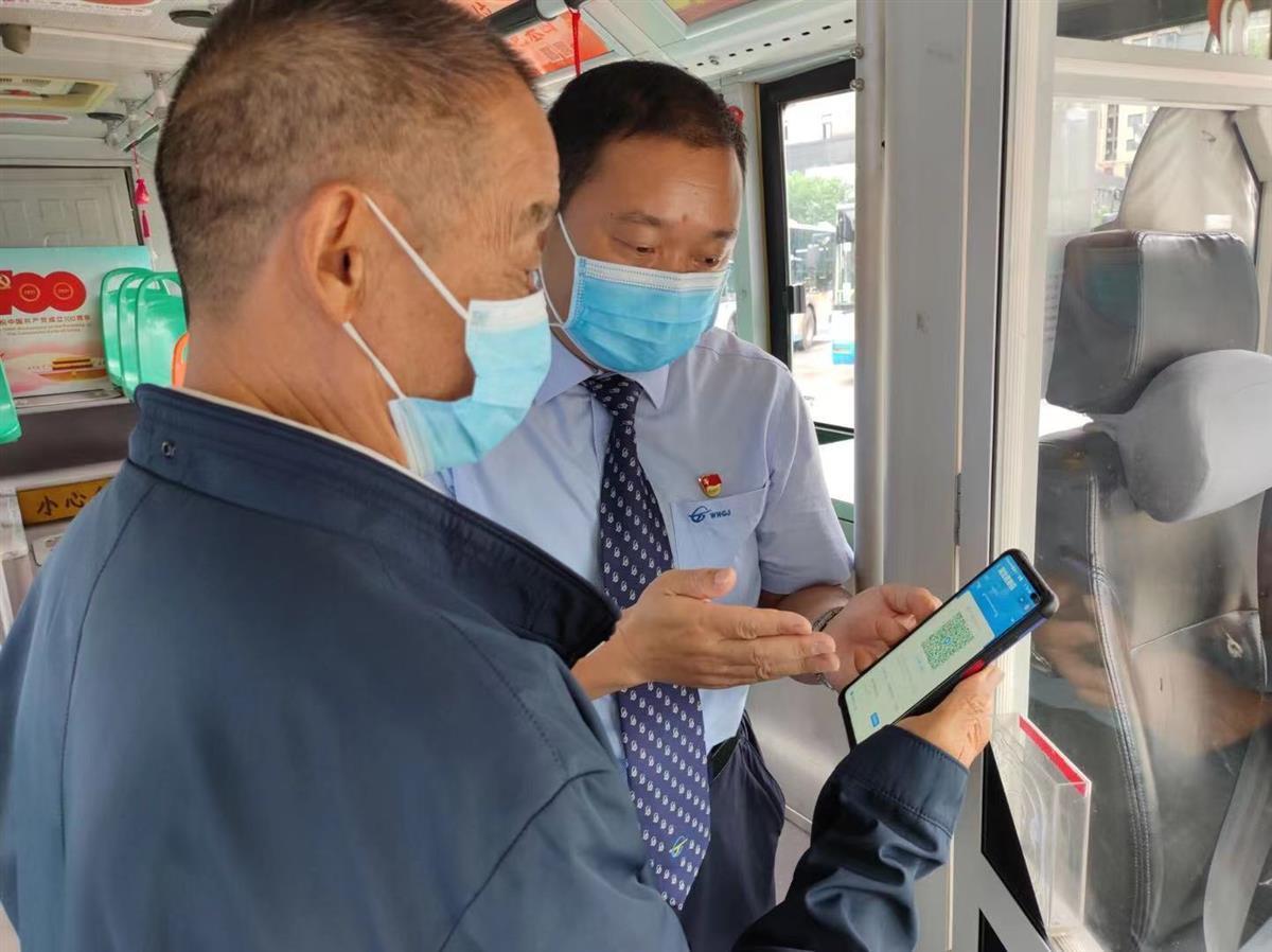自8月3日以来,聂三华都会担任起“亮码”教学的任务,耐心为上车的老年乘客讲解出示“健康码”操作流程。