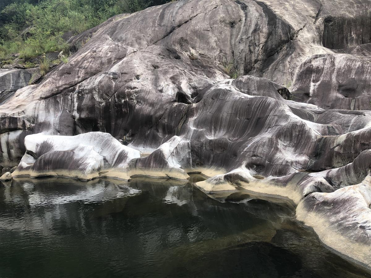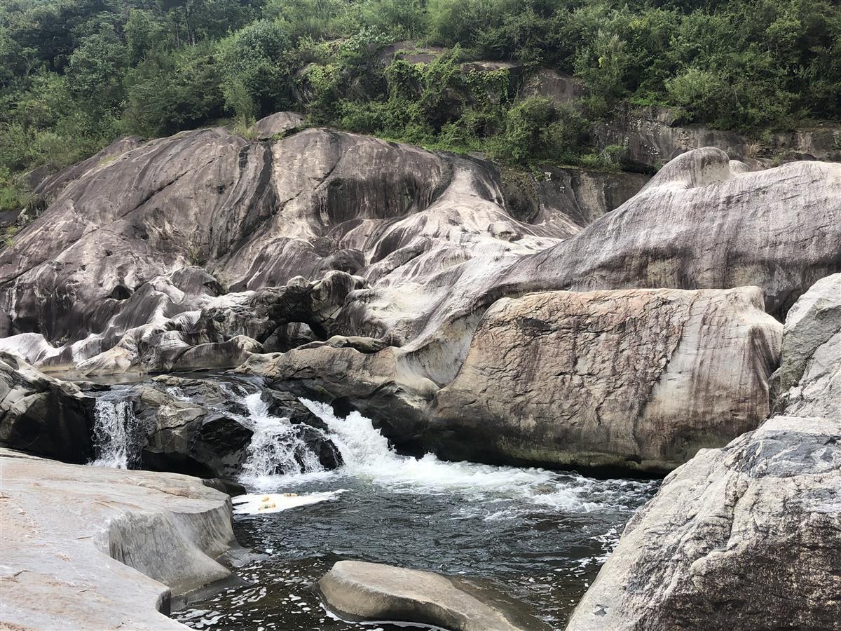 网红丁海玉说,不是亲眼所见,你根本无法想象,在这结实的花岗岩上,竟有如此浑然天成的冰臼群,感叹大自然的神奇时,我似乎在这里找到了内心遗失许久的安宁。河段岩石环绕,岩石上的冰臼似坛如罐,像锅像灶,像八卦像脚印,形态各异,大小不等,在岩石形成的奇石公园,清澈河水流淌,奏出和谐动听的音乐,能看到小鱼儿欢快的翔游水底,这里空气清新,没有喧嚣,周末或小长假,约上三五好友,前来观光、烧烤,又或是煮上一壶山泉水,泡杯深山的香茶,更是妙不可言,这里绝对是休闲养生、净化心灵的好地方。