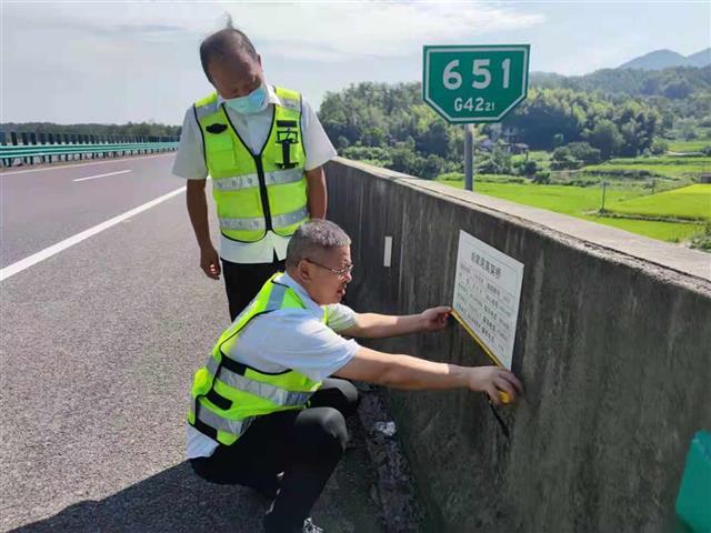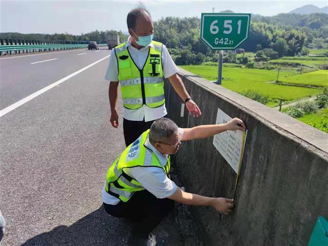 湖北日报讯(记者戴辉、通讯员吴辉、向晶晶)8月18日,麻武高速久雨初晴,举水河大桥上,第二综合巡检组负责人梁木森正给桥梁钉上“信息公示牌”。伴随打孔机的轰鸣,不到10分钟,两块铝合金材质桥梁“身份证”分别固定在桥两端。