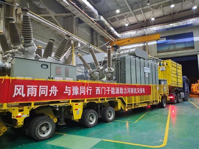 西门子变压器武汉工厂是全国最早生产110kV车载移动式变电站的企业。7月25日凌晨2时,一辆车载移动式变电站从该厂出发驶往遭遇洪灾的河南新乡,驰援灾区恢复供电。这辆车载变电站的容量达4万千伏安,可通过线路连接整套车载变压器及对应10千伏临时开闭所,为新乡市的重点线路供电。7月30日凌晨,随着新乡牧野变的积水排出,抢修条件具备,在西门子能源车载移动式变电站的助力下,牧野变恢复正常运行。