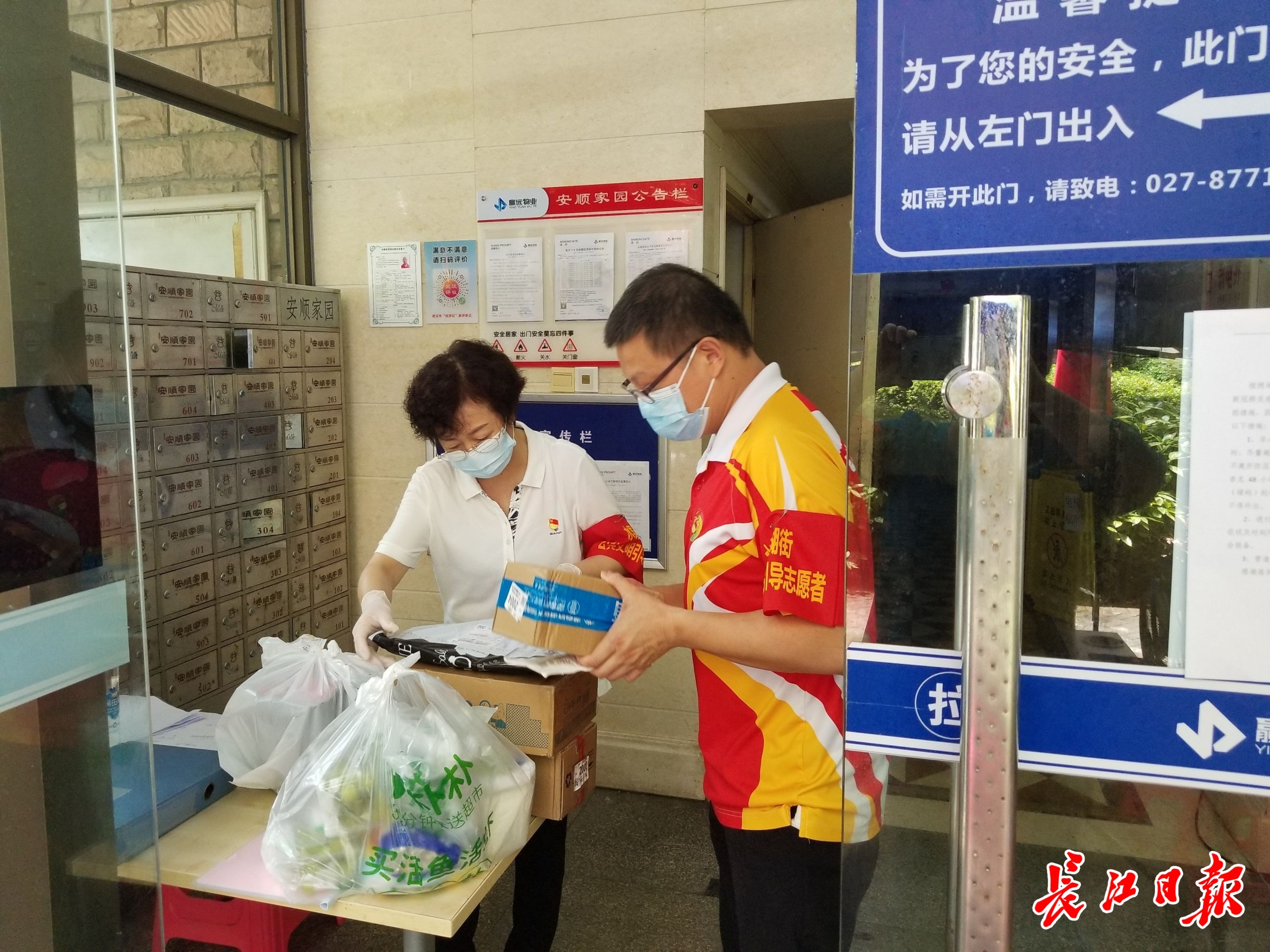 长江日报8月18日讯 8月18日9时,武昌区水果湖街道机安社区安顺家园小区菊坊1栋居民谢建主走到单元门厅,对正在楼内值守的党员王永凤说,她在网上购买的一份早餐、一袋瓜果蔬菜马上到小区东门。王永凤立刻通知在楼栋外值守的党员吴艳丽,后者一路小跑到东门取回东西后,放到单元门口的小方桌上,由居民无接触自取。得知外包装已消毒,谢建主感动地说:“你们太细致了,早餐还是热的,吃得也放心。”