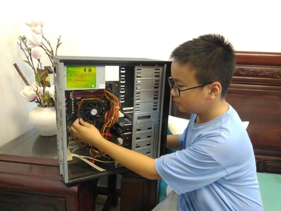 这个假期,他还圆了装机梦。他通过二手平台,用64元网购了CPU、主板和内存,45元买了硬盘,用家里现有的旧显示器、机箱、电源、键盘等,动手组装了一台电脑。