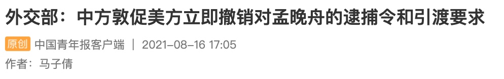 强调:“我们敦促美方立即撤销对孟晚舟女士的逮捕令和引渡要求,加方立即纠正错误,释放孟晚舟女士,并让她尽快平安回到祖国。”