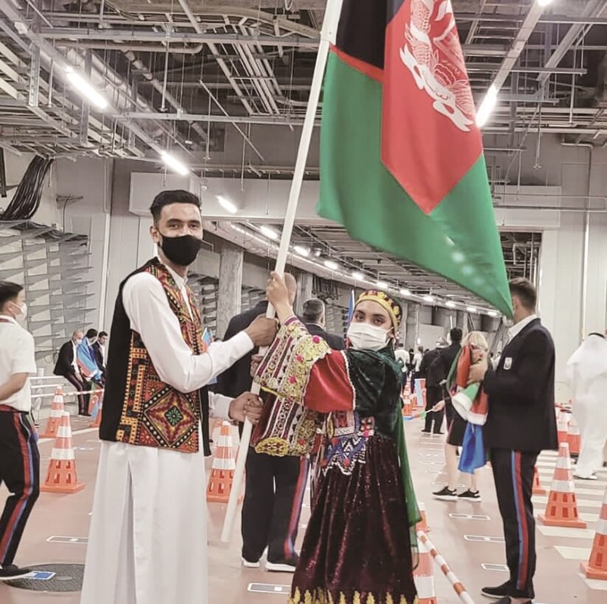 日前,阿富汗局势发生了翻天覆地的变化,面对祖国的变化,25岁的阿富汗短跑选手尤索菲·基米娅更新了她的INS。那是一张她跟跆拳道选手曼苏里·法扎德共举阿富汗国旗准备进入东京奥运会开幕式现场的照片。她的配文充满了对未来的迷茫,表示“不知道这是不是最后一次举旗参加奥运会”。